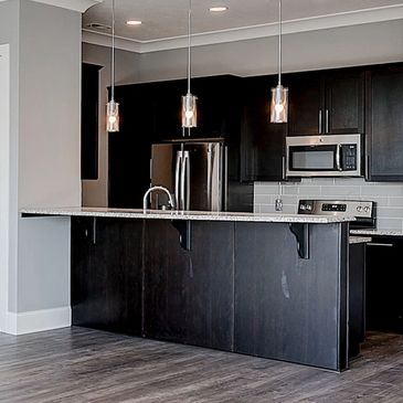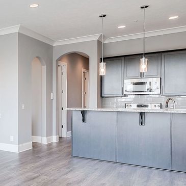 Luxury 1,165 square foot flat rental homes in Carmel with 2 bedrooms and 2 bathrooms, private garage, large closets, luxury plank flooring throughout the entire flat, 10' tall ceilings with expansive crown molding in the large living / kitchen area. Over sized windows throughout the flat provide plenty of daylight. Gourmet kitchen with